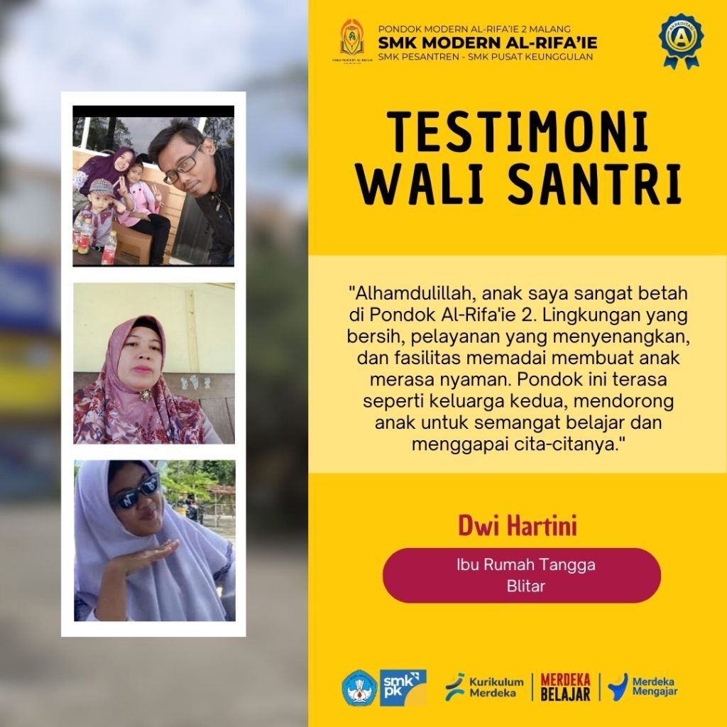 “Alhamdulillah, sebagai orang tua, saya merasa bangga dan bersyukur anak saya bisa mondok di tempat yang sangat nyaman dan aman. Pondok Al-Rifa’ie 2 benar-benar jauh dari hal-hal negatif dan menjadi tempat yang ideal untuk tumbuh kembang anak kami.